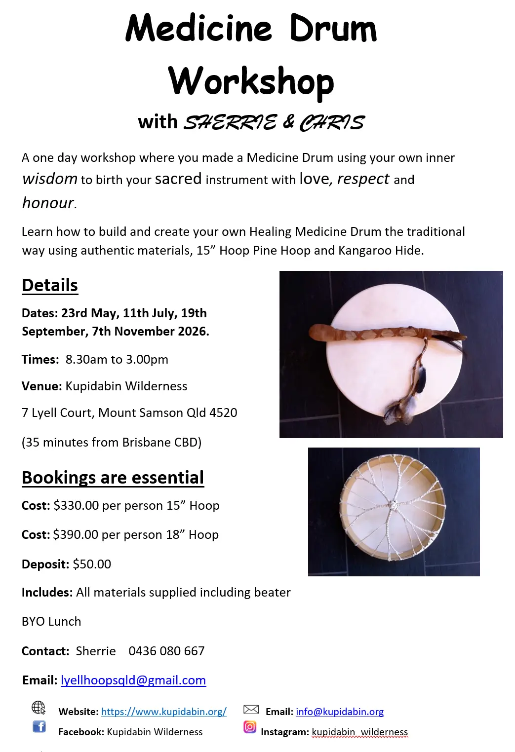 Orders are taken for Drum Beaters and Hoops - Size 20” / 18” / 15” /12” (12” for children). Also for the Smudging Bowls.